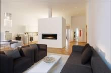 Elegant room-dividing see-through fireplace designed for optimal fire enjoyment