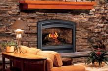 Large firebox opening offers both beauty and ambiance. Available in heat-circulating louvered or louverless designs.
