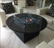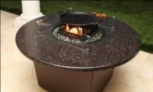 The 48" Riviera fire table seats 4 - 8 people comfortably depending on the seating style. There is ample space from the edge of the table top to the burner pan allowing for space to dine. The distance from the edge of the table to the center of the cooking elements make it easy for everyone around the table to easily cook their own food. The 24" height allows one to get their knees underneath with room to spare. The height also allows you to see over the flame or cooking elements so eye contact with those around is not obstructed, creating the perfect dining and entertainment experience!Round Fire Table Options